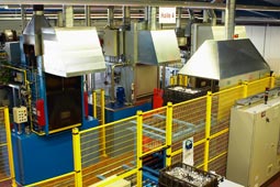 stehen 2 vollautomatisierte Kammerofen-linien incl. Vorwärm- und Anlaß-Öfen mit Schutzgas und Diffusionsrechnern zur Verfügung. Abschreckmedium ist Öl. | |||